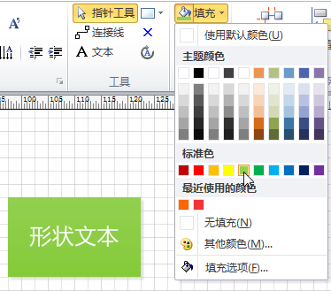 双击形状可以添加文字。选中形状,可以修改其填充颜色或图案,线条边框的颜色、粗细、虚实,阴影的设置,文本的设置等。