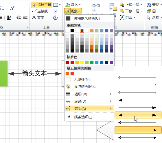 另外,还可以在线条-箭头中设置箭头的形式,例如可以设置成双向箭头。