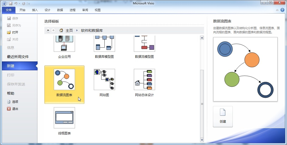 我们经常会遇到需要绘制一些图形来表示各种元素之间关系的情况,或是绘制状态转移图,这时可以使用Visio中的数据流图表进行绘制。