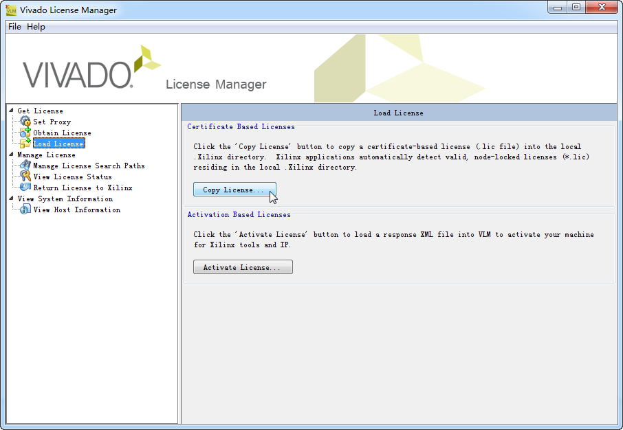 Xilinx Vivado软件破解方法(附License) 发表于 2015-04-16 分类于 开发技术 阅读次数: Valine: 本文字数: 229 阅读时长 ≈ 1 分钟 首先下载附件中的License文件(我用的2014.2版本验证此License可用,如果不能用,请自己再找对应软件版本可用的License)。 附件下载: http://pan.baidu.com/s/1o60wwOy 安装好Vivado之后,在开始菜单-所有程序-Xilinx Design Tools-Vivado中找到Manage Xilinx Licenses如图。 选择Load Licenses,Copy License。 选择License文件并确认,即可激活成功。 相关文章 Vivado中ROM/RAM IP核的使用 Xilinx Vivado的使用详细介绍(3):使用IP核 Xilinx Vivado的使用详细介绍(2):综合、实现、管脚分配、时钟设置、烧写 Xilinx Vivado的使用详细介绍(1):创建工程、编写代码、行为仿真、Testbench Verilog一例(同步与异步时序) Quartus基本操作学习总结 模拟电路设计:理论的神话与残酷的现实 嵌入式科普:基本概念,设计流程,开发特点,如何学习