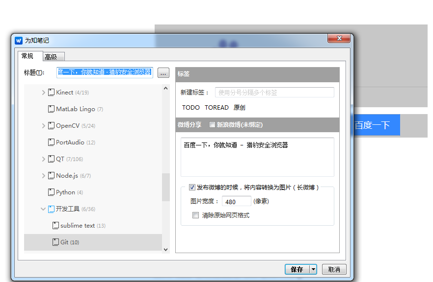 一开始用的最多的就是用为知笔记保存网页内容,自己很少写东西。为知笔记的网页剪辑器挺好用的,我通常是先选中需要保存的内容,然后按快捷键Win+S保存选中部分。