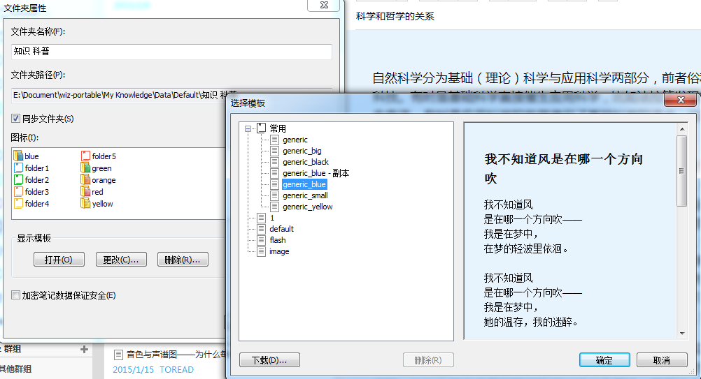 为知笔记可以给笔记设置显示模板,例如我设置的浅蓝色背景色。如果笔记本身的HTML中没有背景,就会自动用显示模板来显示笔记。