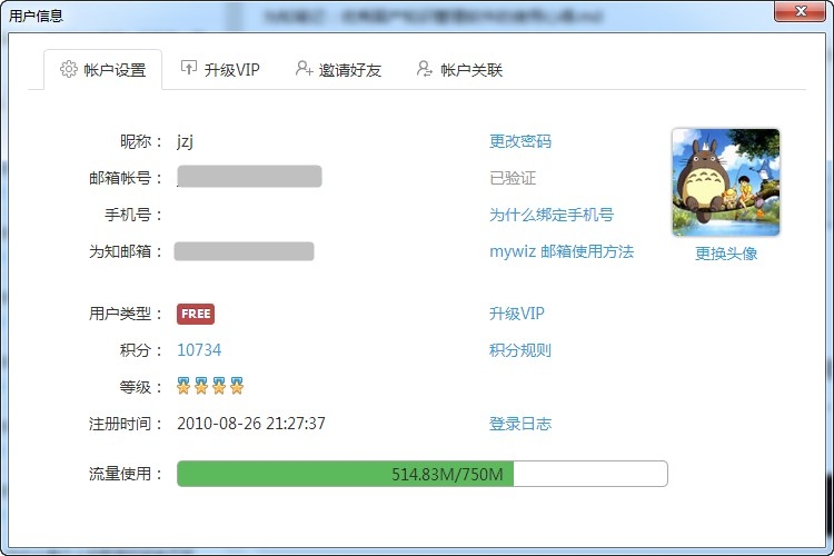 为知笔记的同步功能,不限制笔记数据的数量,只限制单个笔记大小和每个月同步流量。免费版每个月有600M流量,随着等级提高,流量也会增加。另外,使用积分或者付费,可以购买VIP,月流量会增加很多。